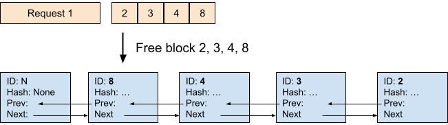 - 通过弹出空闲队列的头部来分配新块。如果头部块是缓存块,这也将“驱逐”该块,使其无法再被其他请求重用。